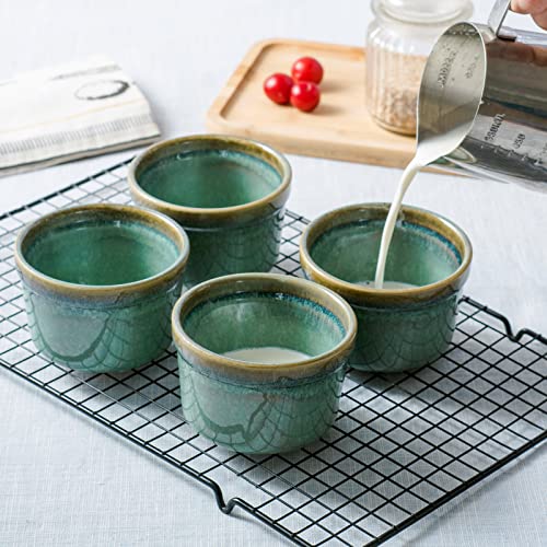 4X Pirottini per Soufflé, Stampi per Soufflé, Ciotole in Ceramica per Creme Brulè, Set da Stampi a Prova di Forno per Crema Pasticcera, Budino, Dolci e Pasticceria, Coppette per Soufflé, Verde Lucido