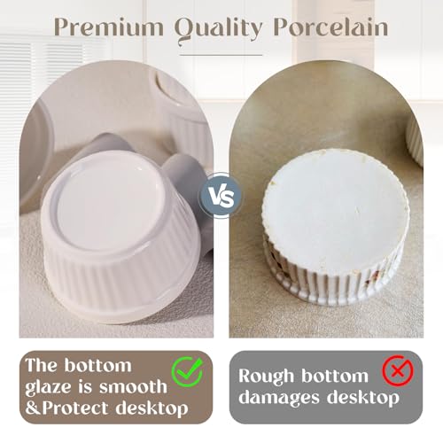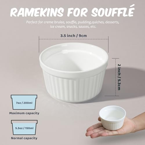Set di 6 Pirottini in Porcellana da 200 ml, Piatti da Soufflé in Ceramica, Resistenti al Forno, 9 cm, per Torte, Budini, Gelati e Salse, Adatti per Friggitrice ad Aria, Bianchi