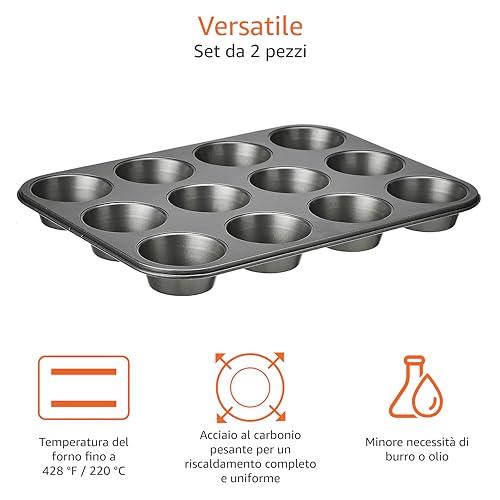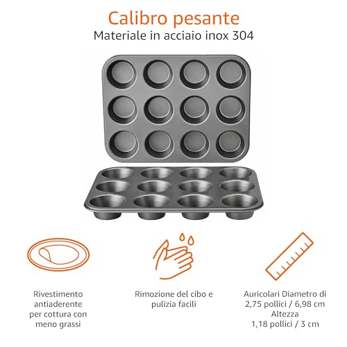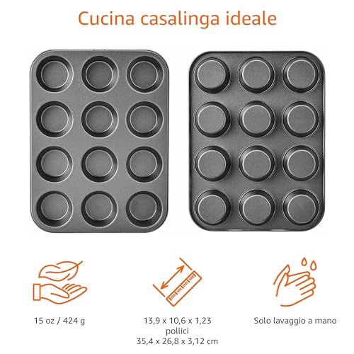 Set di 2 teglie per muffin, ciascuna con 12 stampi (24 in totale), ideale per cucinare muffin, cupcake e altro ancora