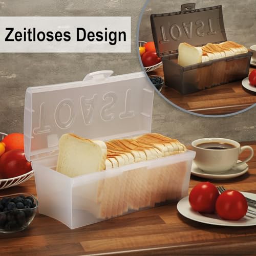 CONTENUTO DELLA CONFEZIONE: 2 scatole per pane tostato // Dimensioni esterne ciascuna: circa 29 x 14 x 12,5 cm / Dimensioni interne ciascuna: circa 28 x 11 x 11,5 cm (lunghezza x larghezza x altezza) // Materiale: plastica // Colore (trasparente): bianco, grigio