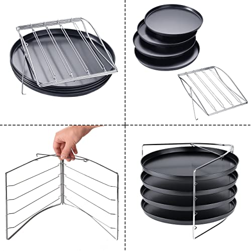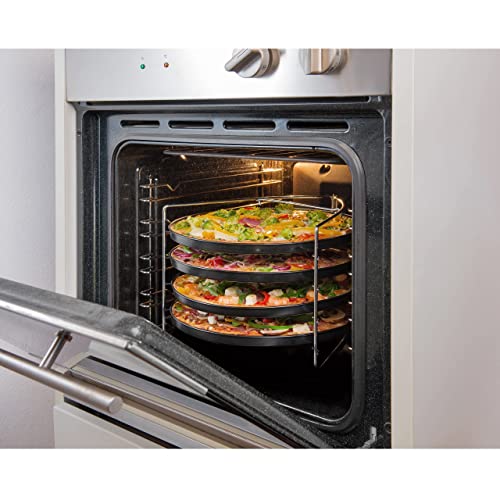 Grizzly teglia per pizza, 5 pezzi, con supporto bloccabile e 4x vassoio per pizza rotondo da 28 cm, portapizza per forno, per cuocere 4 pizze contemporaneamente