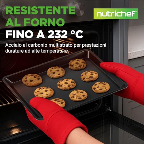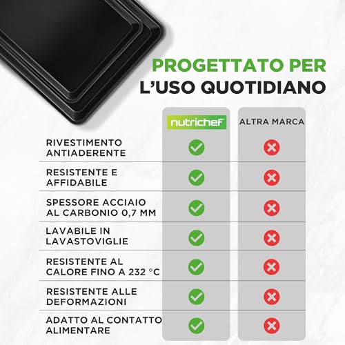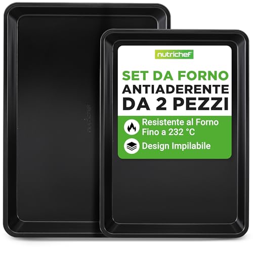 Nutrichef Set Teglie da Forno Antiaderenti 2 Pezzi, Pirofila da Forno 39x26x1,7 cm in Acciaio al Carbonio, Teglia Forno Rettangolare per Pizza, Pane, Biscotti, Sicura e Facile da Pulire