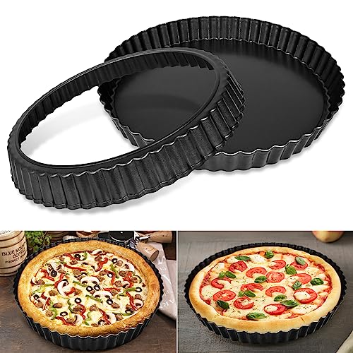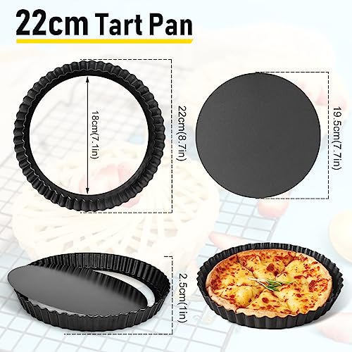Tart Tart Tin, 22 cm Quiche con base sfusa, antiaderente Tart Quiche Pan Pan Flan Flan, Piatto Flan Rimovibile per Cottura, Mini Torta Rotondo Profondo Quiche Pie, Confezione da 2