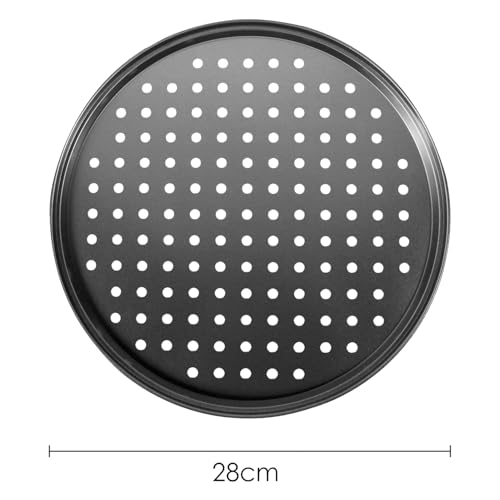 Tissting Teglia per Pizza Forata Rotonda ø 28cm, Teglia per Forno Antiaderente, Tortiera Forata Antiaderente Acciaio Paletta per Pizza Nero, Stampo per Pane Teglie per Crostata per Realizzare Quiche