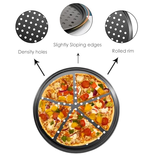 Antiaderente: Teglia per pizza forata rotonda è realizzata con un rivestimento antiaderente di alta qualità, quindi non devi preoccuparti che il cibo si attacchi durante la cottura. Anche in caso di cottura ad alta temperatura, il rivestimento è ancora stabile e può essere utilizzato a lungo senza problemi
