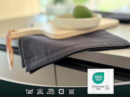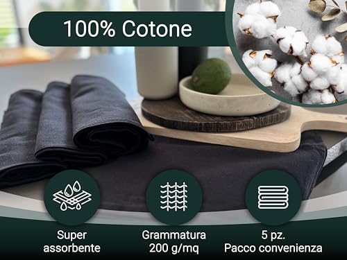 ZOLLNER 5 strofinacci, cotone-lino, 50×70 cm, super assorbenti, senza pelucchi – lavabili a 60°C – nero – qualità gastronomica – certificato Oeko Tex®