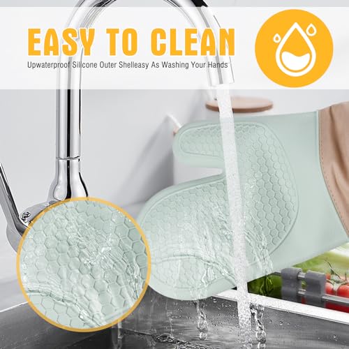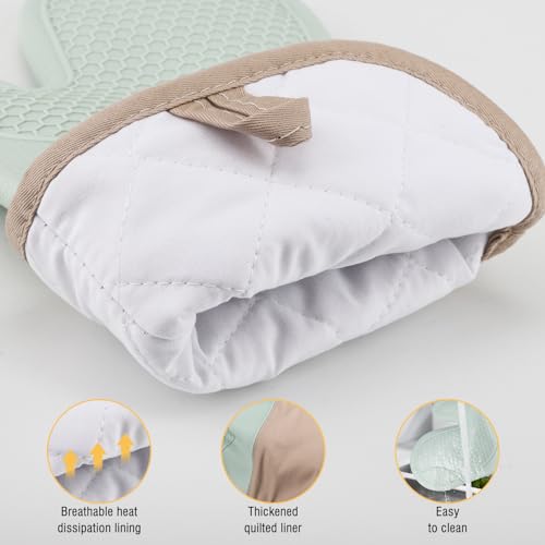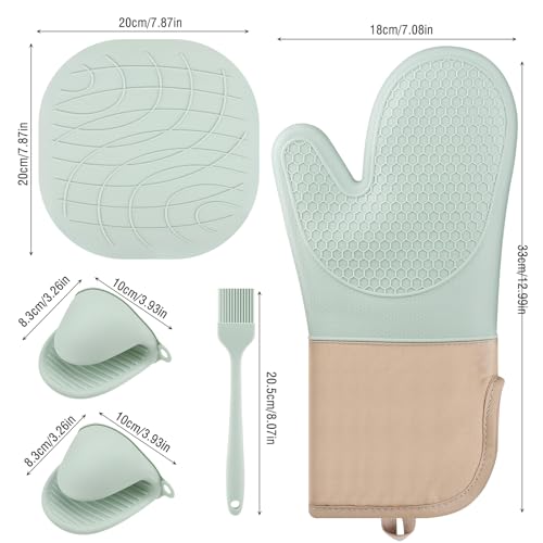 Guanti da forno in silicone,set di guanti da cucina, Set di 6 Guanti da Cucina Silicone Resistente al Calore Guanti da Cucina Adatti per Cucinare Cuocere e Grigliare (Verde Menta)