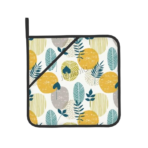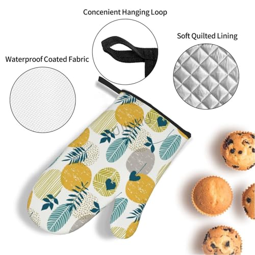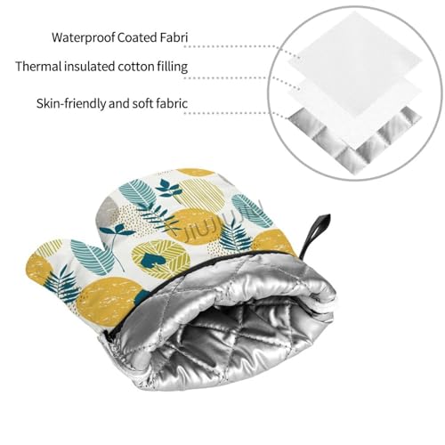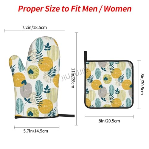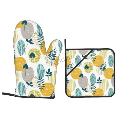Oven Mitts and Pot Holders Set Plant Leaf Patterns Non-Slip Heat Resistant Oven Mitts and Potholder for Cooking Baking Grilling BBQ