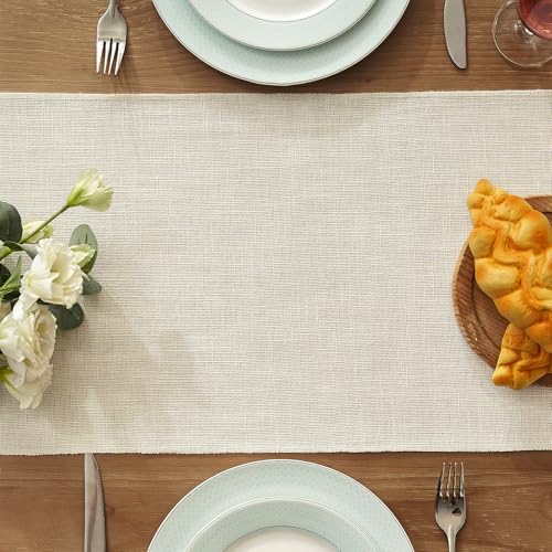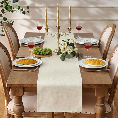 Runner da Tavolo Moderno Beige 30 x 140 cm Lino Rustico Runner da Tavolo per Decorazioni da Tavolo per Matrimoni Stile Fattoria Festa Vacanza Cucina Tavolino Decorazione Copertura