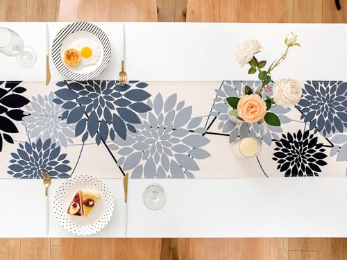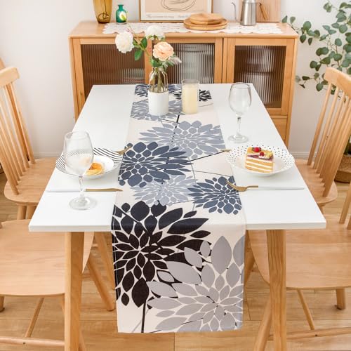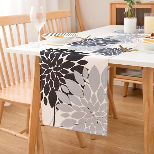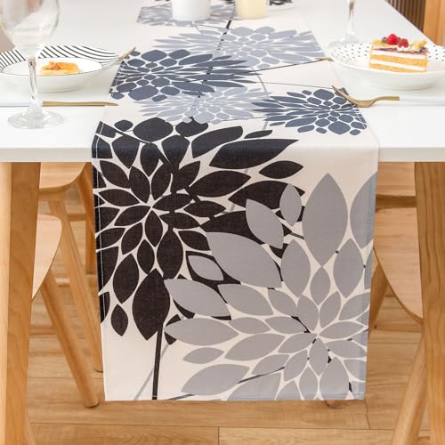 Runner Tavola Moderno Nero e Grigio 40x140cm Centro Tavola Floreali Runner da Tavolo Elegante 1 Pezzo Lino Runner Tavolo per Cucina Sala da Pranzo Soggiorno Tavolo Decorazione