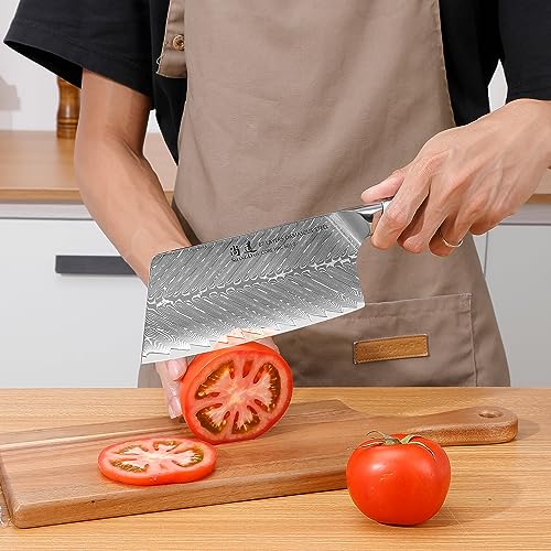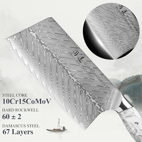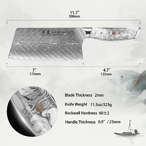 SHANGDAO Coltello mannaia da 17,5 cm, coltello da chef cinese professionale, acciaio damasco forgiato con manico in resina
