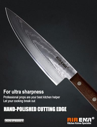 ✅ 【LAMA ULTRA AFFILATA】 – Coltello da chef professionale multiuso AIRENA con curvatura perfetta (14-16° per lato) e resistenza minima al taglio, che soddisfa tutte le esigenze dello chef. Il coltello da chef AIRENA Damasco è perfetto per tritare, affettare e sminuzzare carne, pesce, sushi, verdura e frutta. Ottimo per chef professionisti, esperti culinari, ristoratori e chef casalinghi alle prime armi.