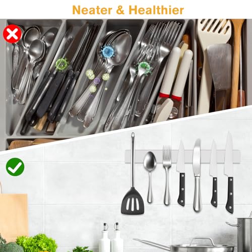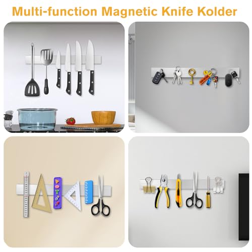 Un buon aiuto per tenere in ordine: Il supporto magnetico a parete per coltelli può appendere utensili da cucina, come coltelli da cucina, forbici, cucchiai, fruste, ecc, aiutandovi a risparmiare spazio nella credenza, bancone, banco di lavoro