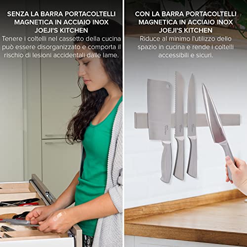 Joeji’s Kitchen Barra Portacoltelli Magnetica 40 cm – Acciaio Inossidabile – Striscia Magnetica per Coltelli – Adesivo o Viti – Magnete per Coltelli da Cucina – Portacoltelli a Parete