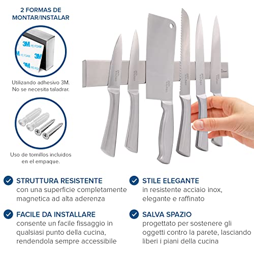 Porta coltelli magnetico – Barra coltelli magnetica in acciaio inox, opzione pratica, robusta e igienica per la cucina. Tenere i coltelli nei cassetti e non sulla calamita coltelli opacizza le lame, espone a rischio lesioni e accumula sporco e germi.
