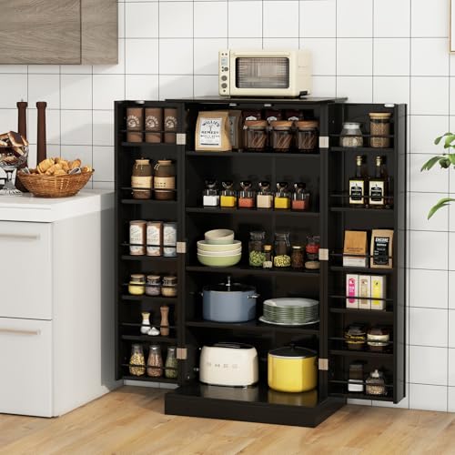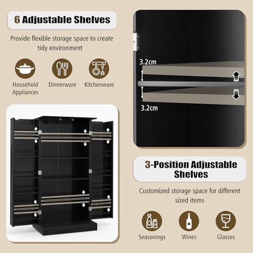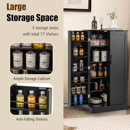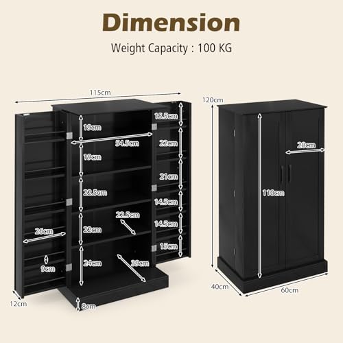 KOMFOTTEU Mobiletto Multiuso con Ripiani Regolabile, Credenza Cucina Salvaspazio, Armadio a Buffet con Dispositivo Antiribaltamento, Madia Soggiorno Moderna per Sala da Pranzo, 60x40x120cm (Nero)