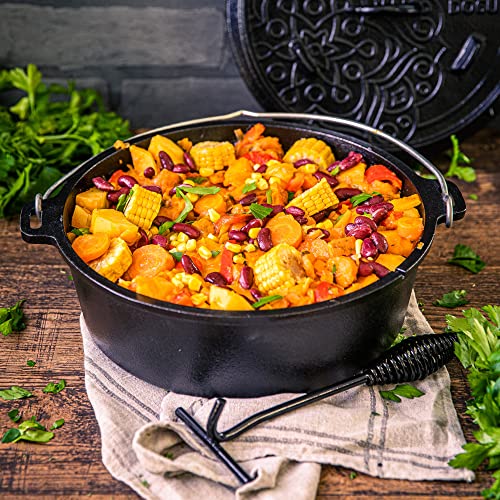 BBQ-Toro Ultimate Dutch Forno con rivestimento PRO3+, 9,0 litri (DO9U), pentola senza piedini, già cotta, preseasoned con processo PRO3+, pentola in ghisa, teglia con sollevatore per coperchio