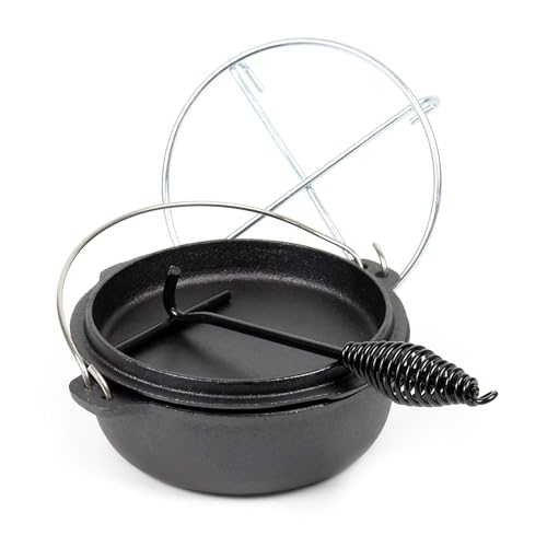 Wiltec Dutch Oven Forno Olandese con Pentola in ghisa 2l sottopentola e solleva coperchio per fuoco campeggio