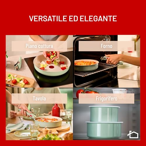 ADATTA A TUTTE LE FONTI DI CALORE: Compatibili con piani cottura a gas, elettrici, in vetroceramica, a induzione e adatti al forno (tranne coperchi in vetro e manici)
