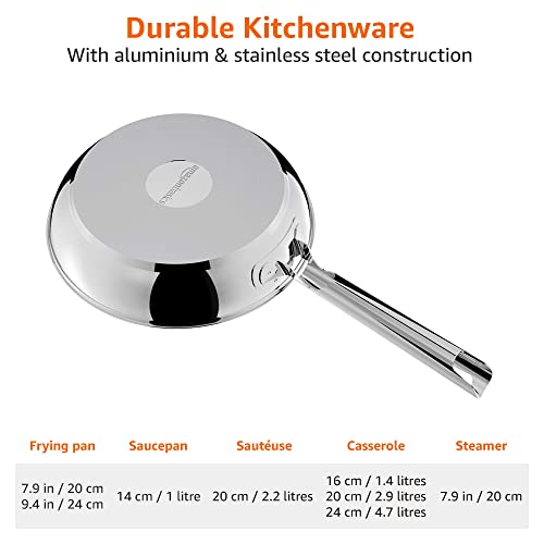 Amazon Basics 11 Pezzi Set di Pentole a Induzione – Acciaio Inox, con Coperchi, Argento