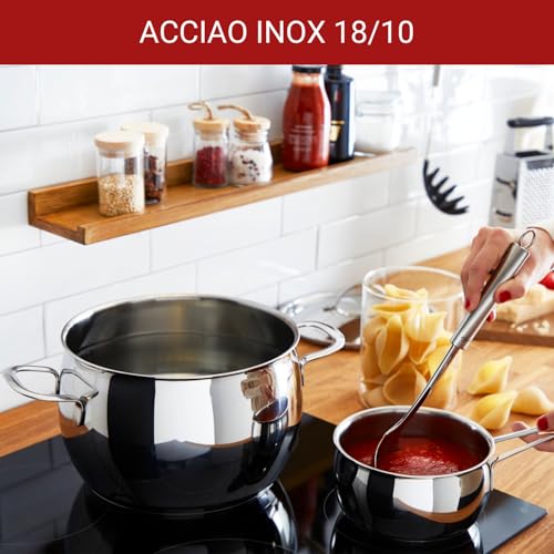 BATTERIA PENTOLE ACCIAIO INOX: Il set di pentole Euforia sono realizzate in acciaio inossidabile 18/10 di alta qualità, a durata eterna e 100% igienico, con linee dolcemente curve per la cucina di ogni giorno