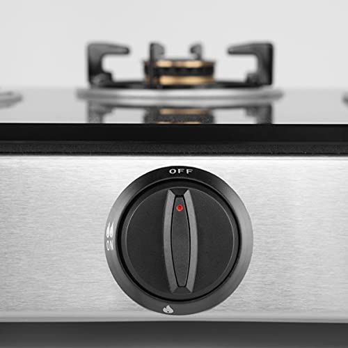 Orbegozo – FO 3520, Fornello a gas, 2 bruciatori, tripla corona gas, butano o propano, accensione piezoelettrica, superficie in vetro temperato, struttura in inox