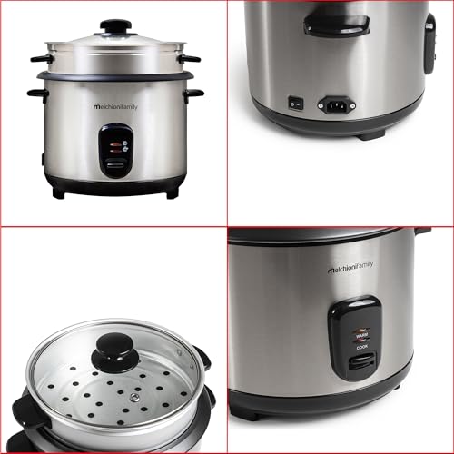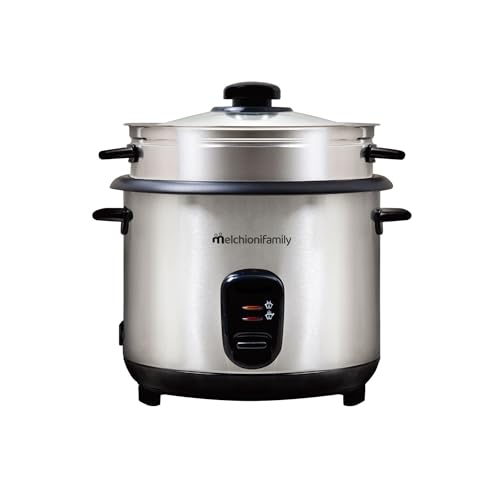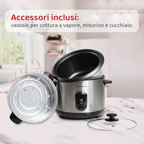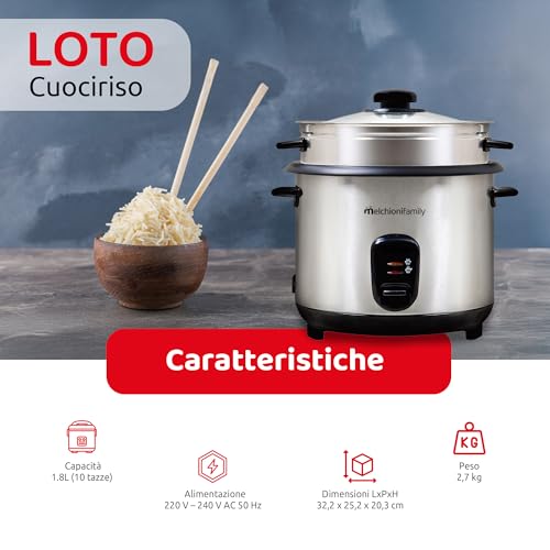 Melchioni Family | LOTO Cuociriso 1.8L con Cottura e Riscaldamento, Coperchio in Vetro, Antiaderente, Spegnimento Automatico, Vapore, 800W, Accessori Inclusi