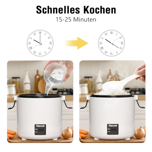 CAPACITÀ IDEALE – 0,3 l, 1,5 tazze crude, 3 tazze cotte, per 1-2 persone, ideale per individui, coppie o piccole famiglie. Circa 15-20 minuti di cottura veloce farà risparmiare tempo prezioso. Potenza: 200 Watt; tensione di funzionamento: 220-240 V.