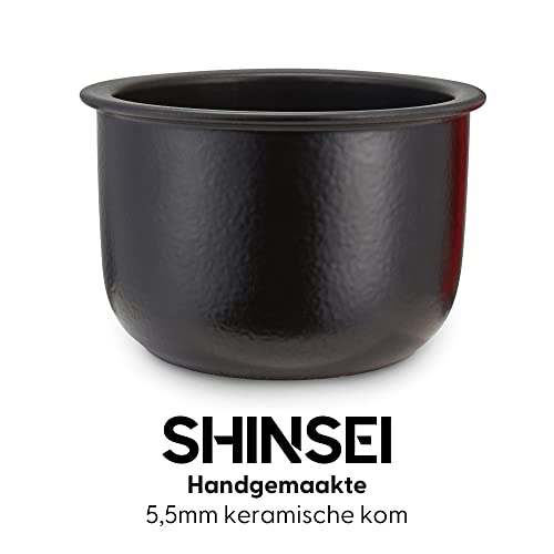 CIOTOLA INTERNA SHINSEI IN CERAMICA DA 5,5 MM FATTA A MANO – Cottura sana e durevole con linee di misurazione del riso con stampa in seta trasparente. Include manuale di istruzioni multilingue, misurino, spatola per riso e mestolo