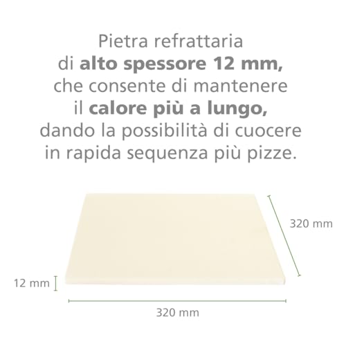 Piano cottura in pietra refrattaria, da 32×32 cm , rimovibile. Spessore 1,2cm per mantenere il calore più a lungo. Altezza disponible tra pietra refrattaria e resistenza superiore 7,4 cm