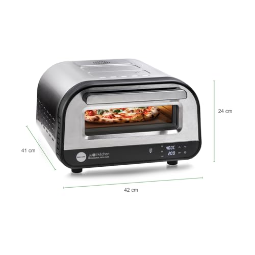 MACOM, Forno Pizza Professionale, Cuoce in 2 minuti, scalda fino a 400°, Piano cottura in pietra refrattaria da 32 cm rimovibile, 1700W, Just Kitchen 884 Professional Pizza Oven