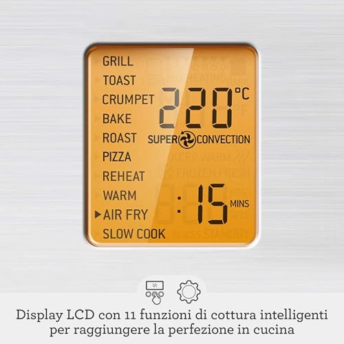 Display LCD e luce interna del forno: Accesso facile alle funzionalità tramite display LCD, con indicazioni di preriscaldamento completato e conto alla rovescia della cottura. La luce interna si accende automaticamente al termine del ciclo