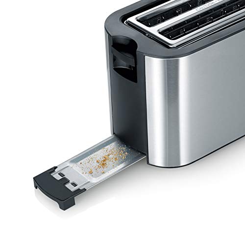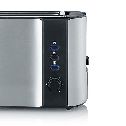 Severin AT 2590 Tostapane Automatico, Circa 1400 W, Inserto per panini Integrato, 4 fette, Acciaio Inox, Edelstahl-gebürstet-Schwarz