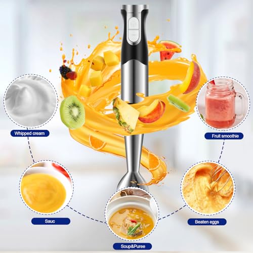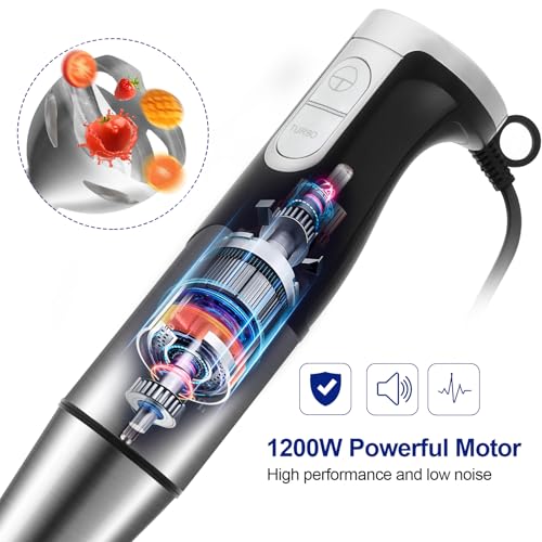 Frullatore a Immersione 1200W 6 in 1 Frullatore Tritatutto Multifunzionale con Acciao Inossidabile 304 Multifunzione Mixer Immersione con Turbo Presa Antiscivolo Velocità Regolabile