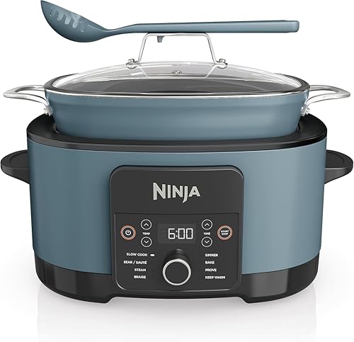 Ninja Foodi PossibleCooker, 8-in-1 Slow Cooker with Removable Non-Stick Pot, Steaming Rack, Integrated Spoon & Glass Lid, Slow Cook, Sear, Braise, Steam & more, 8 porzioni, 8L, Sea Salt Grey MC1001UK