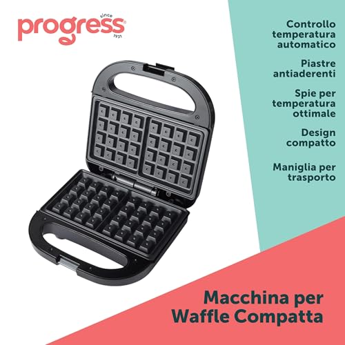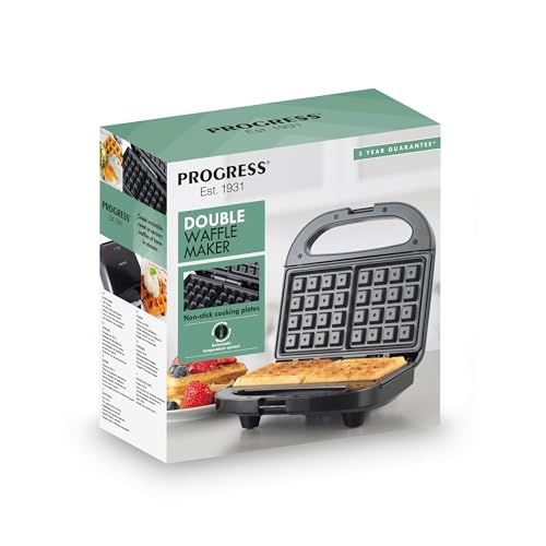 Progress EK5852P Macchina per Waffle doppia – Macchina per dessert elettrica, piastre da cucina antiaderenti, Ferro per waffles belga/americane, controllo automatico della temperatura, 750W