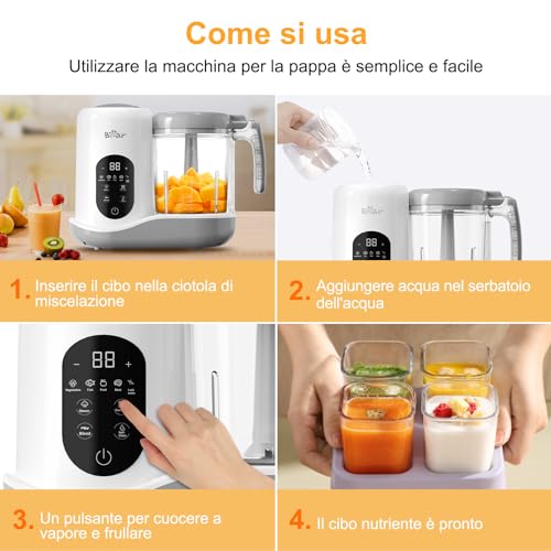 Bear Produttore aliment Cuocipappa Multifunzione,Mixer multifunzionale 7 in 1 per Bébé,Cottura e tritatura automatica,Funzione autopulente,Controllo touchscreen