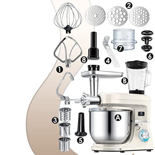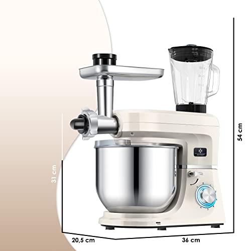 KESSERยฎ Robot da cucina universale 3 in 1 K-KM 3000 con tritacarne Impastatrice multifunzionale Miscelatore da 5,5 l con 3 strumenti di miscelazione Strumenti per miscelare Spremiagrumi, crema