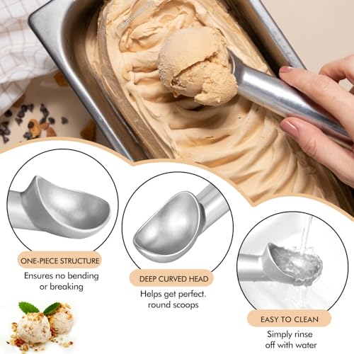 Facile da usare: il manico ergonomico offre una presa confortevole e facilita la porzionatura di gelati, sorbetti, frozen yogurt e altre prelibatezze. I bordi lisci e privi di sbavature della testa del cucchiaio rendono facile l’estrazione di perfette palline di gelato.