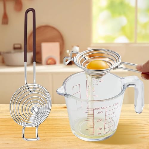Separazione rapida ed efficiente: il nostro separatore per uova crude è dotato di una struttura a spirale malleabile che permette agli albumi di filtrare istantaneamente, garantendo che nessun tuorlo vada perso. Il design del manico lungo consente di posizionarlo sopra qualsiasi ciotola senza sporcarsi le mani, rendendolo un separatore di tuorli d’uovo essenziale per le vostre esigenze di cottura in cucina.