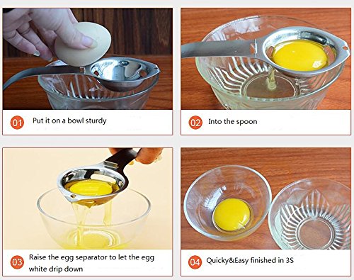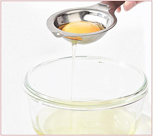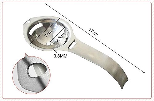 Separatore di tuorlo d’uovo bianco: nessun disordine e nessun tuorlo scivola attraverso questo strumento, separando il tuorlo dal bianco in un attimo! Separatore di uova in acciaio inox aerodinamico con design a 3 fori cavo, bianco d’uovo e giallo separati.