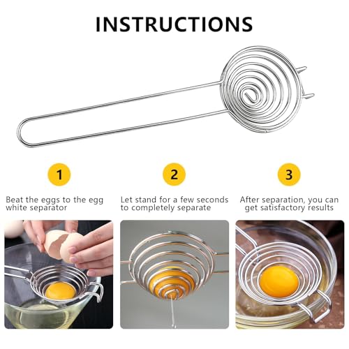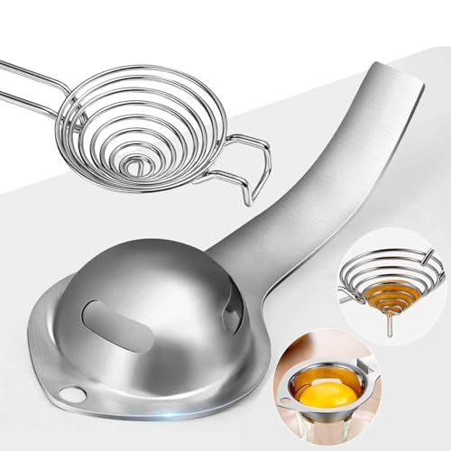 Materiale: colino per uova in acciaio inossidabile resistente con lucidatura a specchio, questo separatore ha uno strato interno liscio per proteggere il tuorlo d’uovo dagli schizzi, separazione perfetta ogni volta