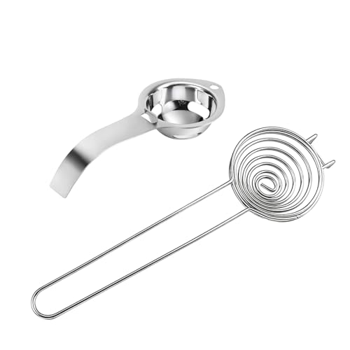 Separatore Uova Professionale,2 Pezzi Acciaio Inossidabile con Doppio Manico Lungo Corto Design Argentato per Separazione Tuorlo Albume Rapida Accessorio Cucina per Dolci Proteine