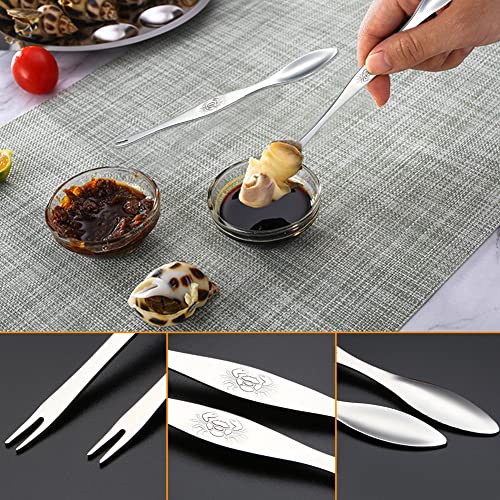 ✦✦ 【Set di strumenti per frutti di mare ampiamente utilizzati】: per servire pasti francesi, granchi e aragoste, sushi, uova e altri cibi a guscio. Il set di pinze per lumache e forchette per lumache è perfetto per qualsiasi casa o ristorante che serve pasti a base di lumache. Le forchette per frutti di mare possono essere utilizzate anche come forchette per frutta.