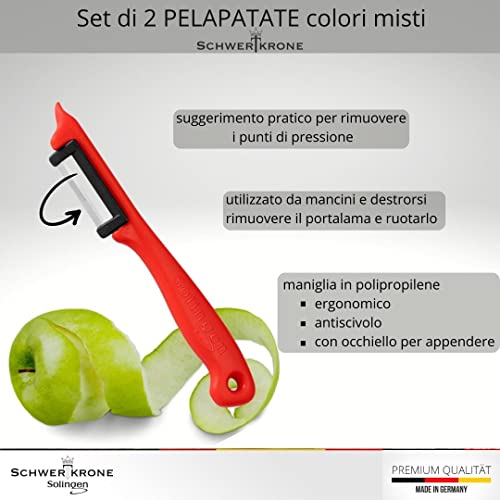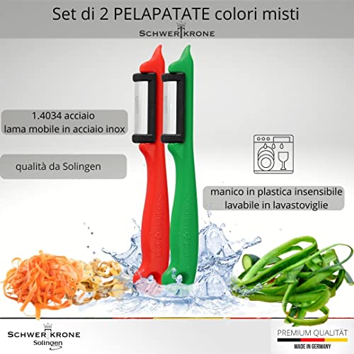 SCHWERTKRONE Solingen Set di Pelapatate a Pendolo per Frutta e Verdura: Affettare e sbucciare verdure, asparagi, cetrioli e altro con facilità