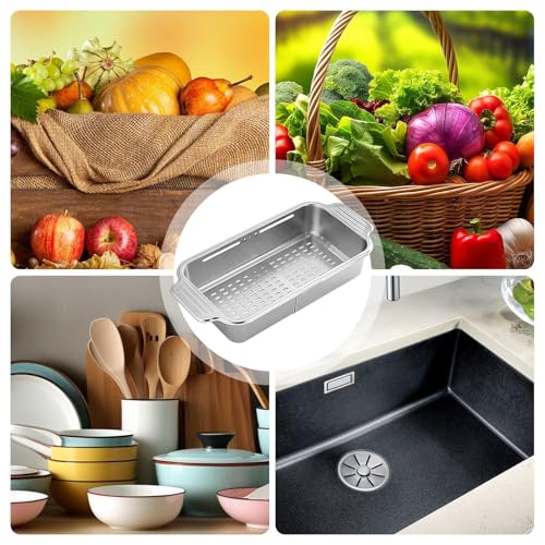 Over The Sink Colander – Collapsiible Colander – Over The Sink Strainer | Adjustable Kitchen Sinks Drying Rack | Draining Strainers Stopper Basket Colanders For Washing Food Home Bathroom Counter