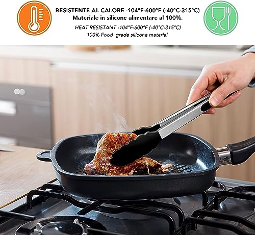 PINZE DA CUCINA PROFESSIONALI: Pinze da Cucina con Corpo in Acciaio Inox e punte in Silicone che consentono di afferrare in modo sicuro e preciso sia cibi delicati che cibi caldi senza danneggiare la superficie degli alimenti o dei recipienti.