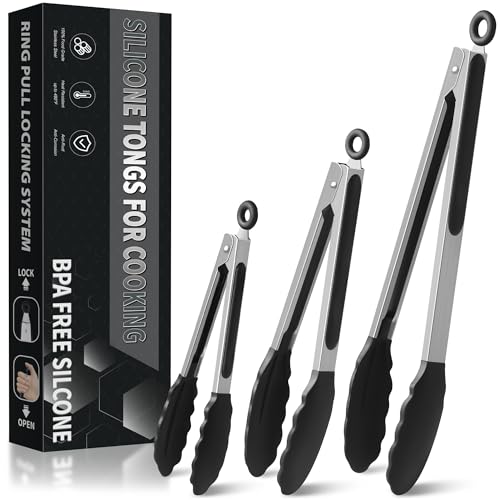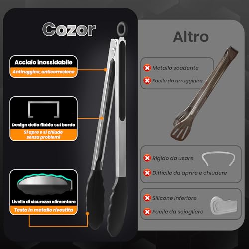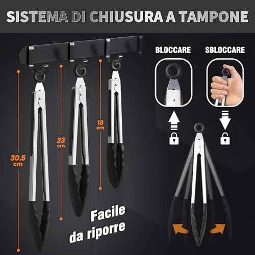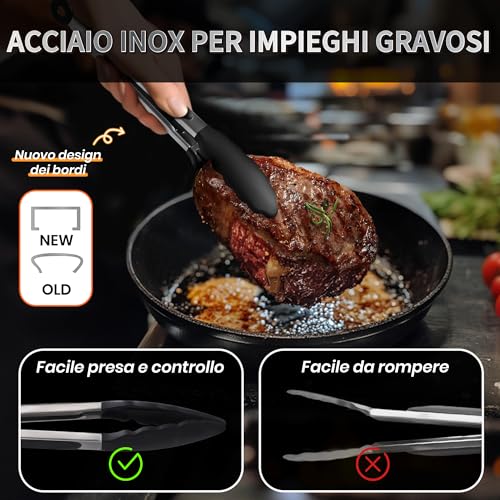 Pinze da Cucina, Realizzato in Acciaio Inossidabile Spesso e Punta in Silicone Senza BPA, Pinza Cucina con Sistema di Bloccaggio Intelligente, Resistenza alle alte temperature 480°F(18, 23, 30,5cm)
