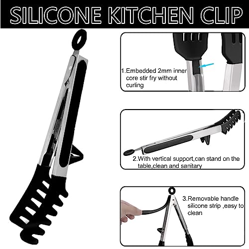 ★ Aggiornamento delle funzionalità — Questa pinza da cucina ha un paio di supporti aggiornati che consentono alle pinze di stare su un tavolo o un piano di lavoro quando non in uso, mantenendo le pinze pulite. La connessione tra le impugnature e i manici in silicone è più forte, quindi il cibo finisce sul piatto e non sul tavolo.