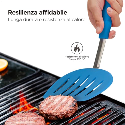 Equilibrio perfetto per una rotazione impeccabile: Raggiungi la perfezione culinaria con la nostra spatola larga 15,3 cm, sapientemente progettata per offrire il perfetto equilibrio tra flessibilità e robustezza. Il robusto nucleo in acciaio inossidabile garantisce prestazioni e affidabilità durature, rendendo un gioco da ragazzi girare pancake, uova, polpette e altro ancora. Gestisci la cottura dei tuoi cibi con facilità e sicurezza. Ideale per piatti sostanziosi e di grandi dimensioni
